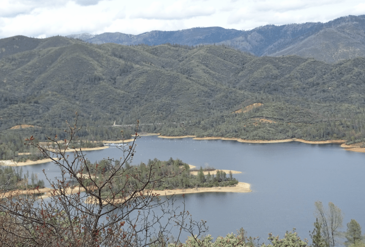 Whiskeytown Lake is actually a reservoir, surrounded by mountains. As it is early in the season, many of the areas are closed. The trail we’ve been directed to begins where the paved road ends, past a number of hiking trails and camping sites. The road is rough and narrow, and as we ascend the twists and turns become sharper, with a wall of trees rising on Ric’s side and steep drops next to me.