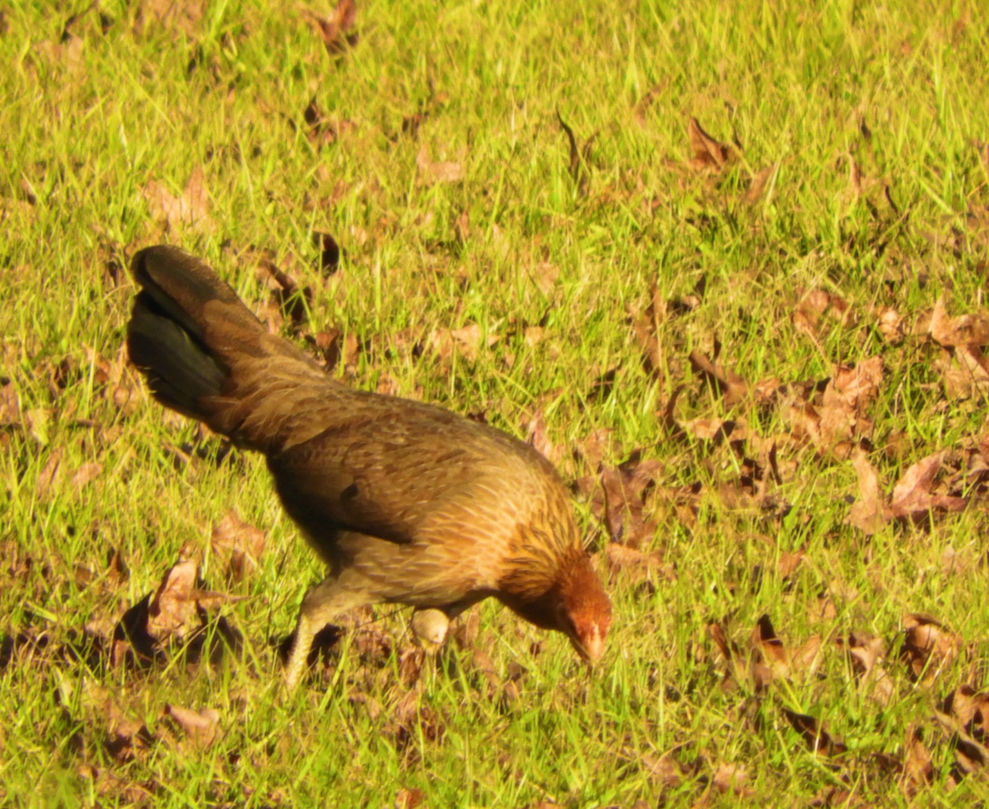 “Looks like a chicken, or maybe a young wild turkey,” Ric suggests. I google “chicken-like bird in Texas” but nothing that resembles the feathered mystery appears.