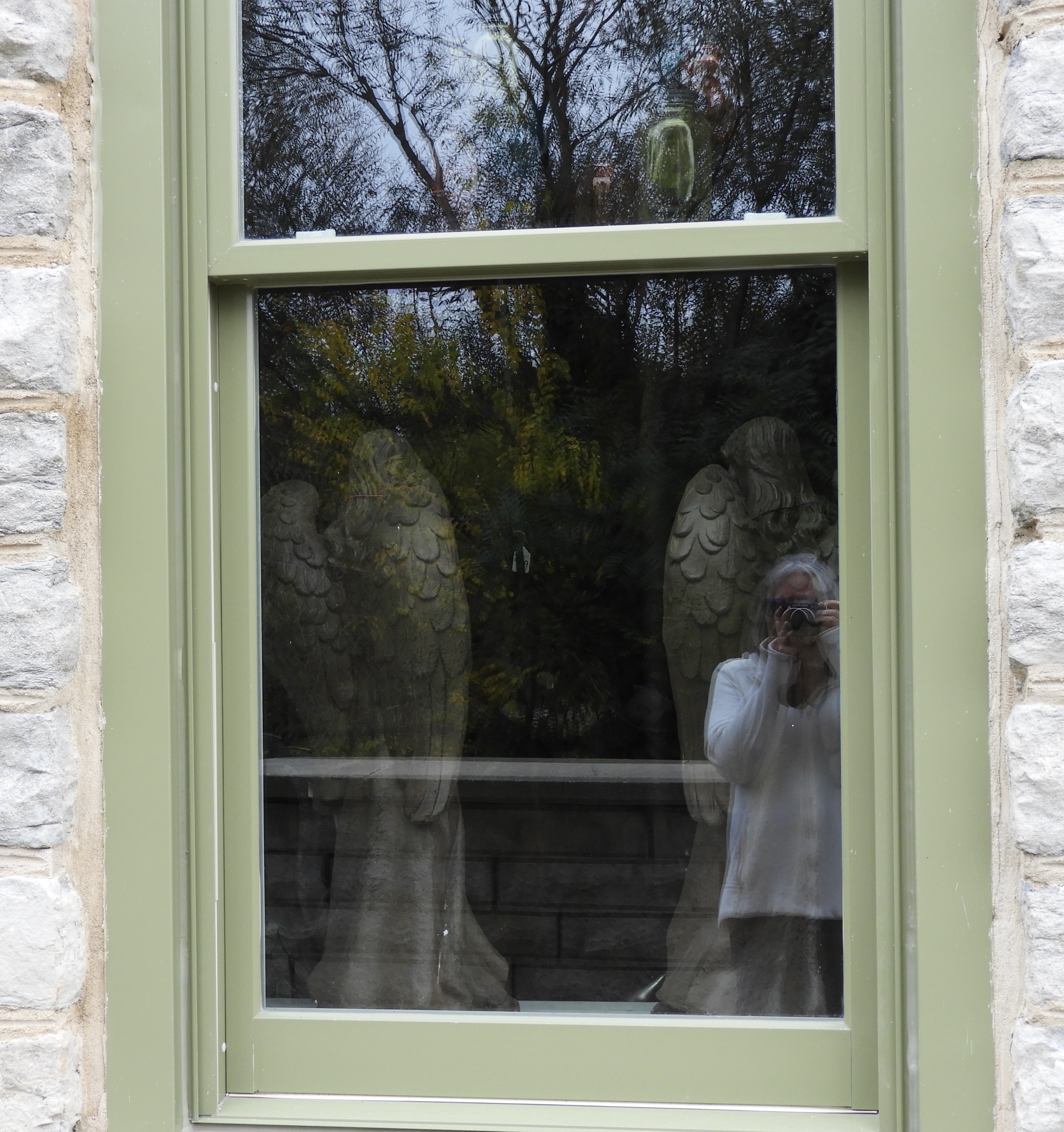 Even though I’ve used this photo before, I love the way the window displays both what’s inside – the wings – and what’s outside – the tree and photographer.