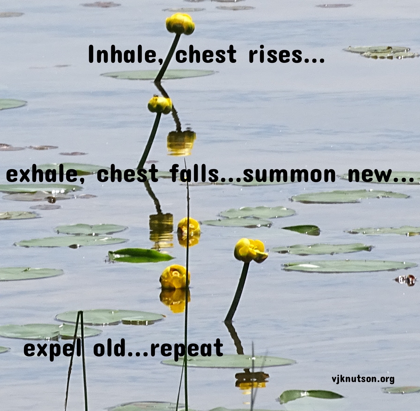 I picture myself lying on an air mattress, floating on calm waters, the rays of the sun lifting the chill, penetrating deep – bones and muscles welcoming heat. Imagine my breath as a conduit, breaking up the crystallized blockages – the gentle flow a steady and persistent nudge – inviting harmony.