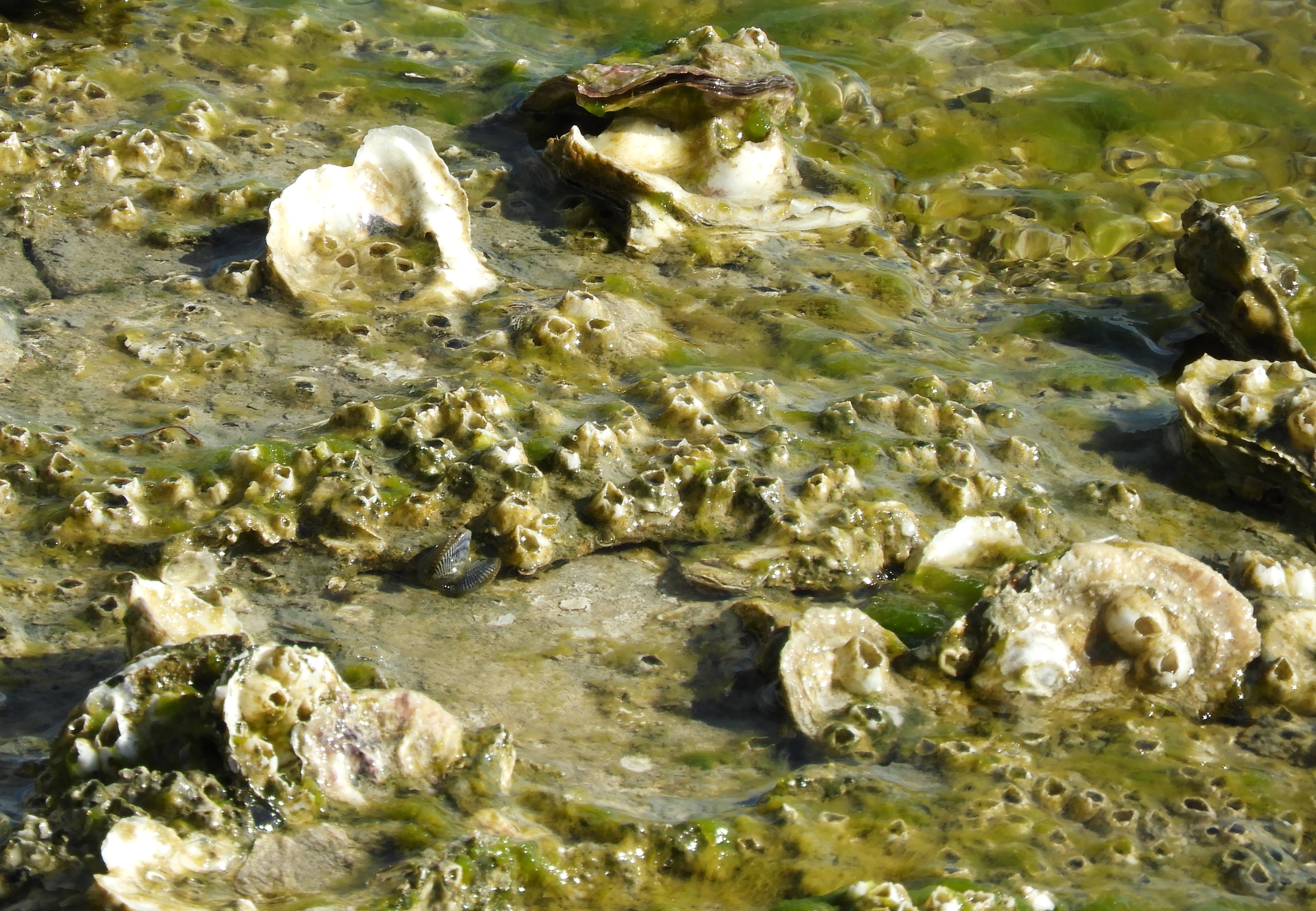 A pipe runs just adjacent to the boardwalk and I note the build up of algae and crustaceans. Oyster beds.