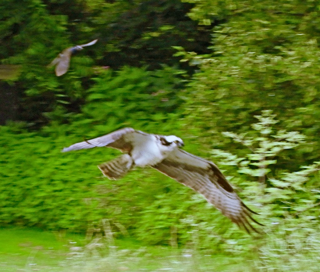 While fishing with our granddaughter down by the falls, we are joined by an osprey, also looking for a catch. None of us has any luck, and the osprey moves on.