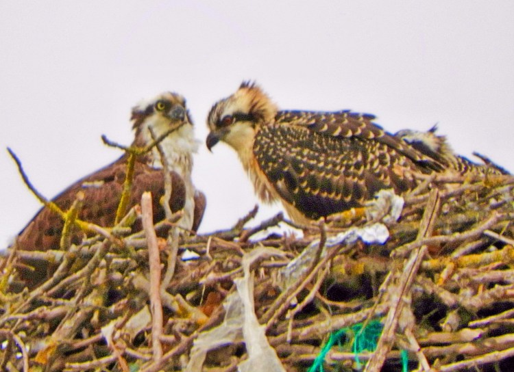 We decide to follow him back to the nest. Mom and babies are in residence when we arrive, and after a bit of observation we realize that one of the young ones is finding his wings preparing for first flight.