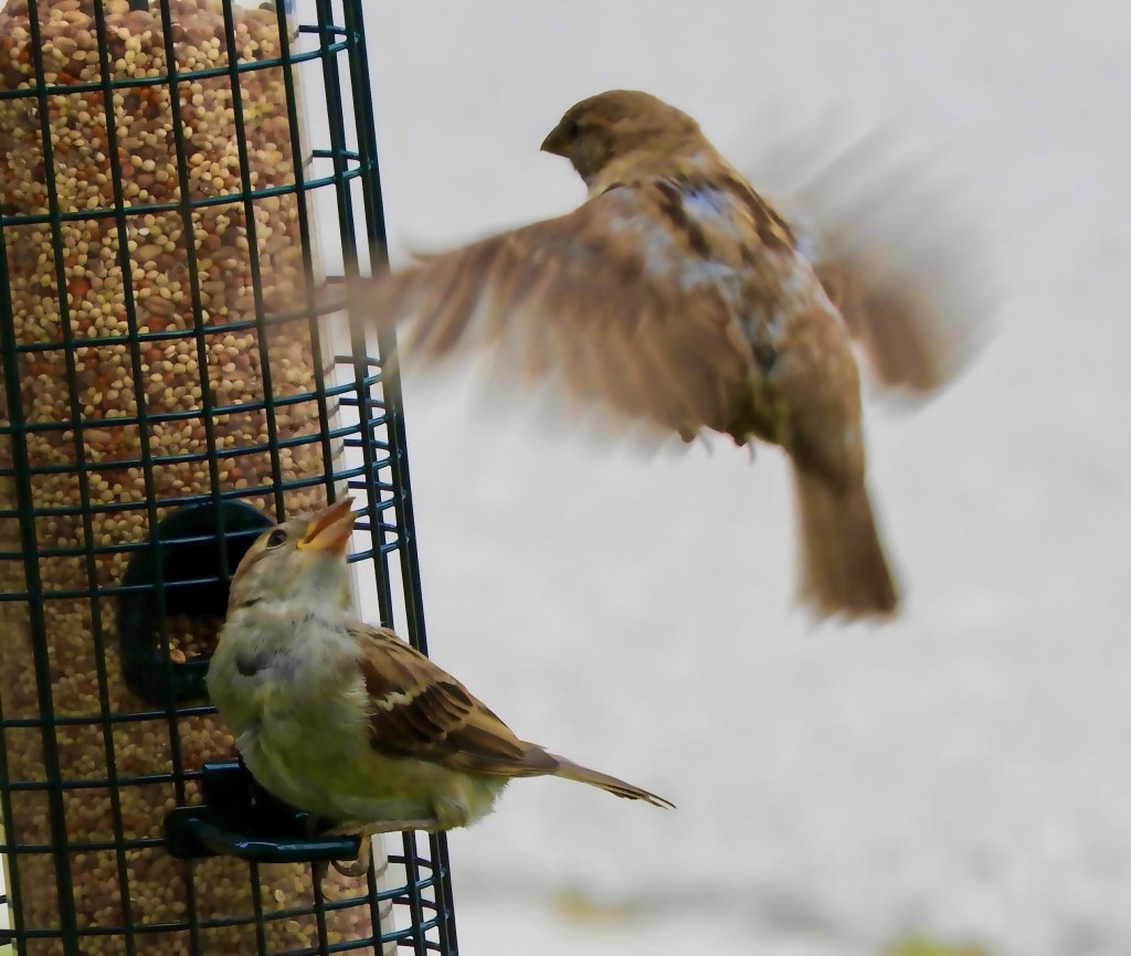 Now, I am able to get outside, and commune with the birds in their own settings, but still, two feeders hang outside the window, and I love to sit on the porch and watch as sparrows and finches vie for a perch.