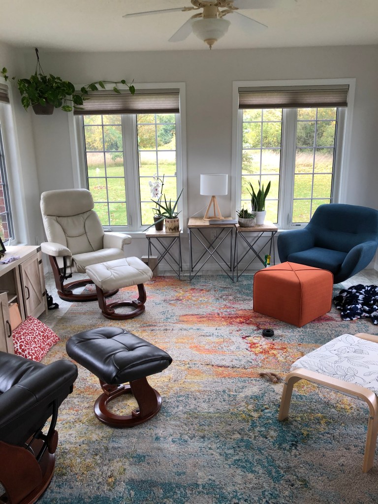 Beautiful photos – that cozy room looks so inviting (and I love the rug!).