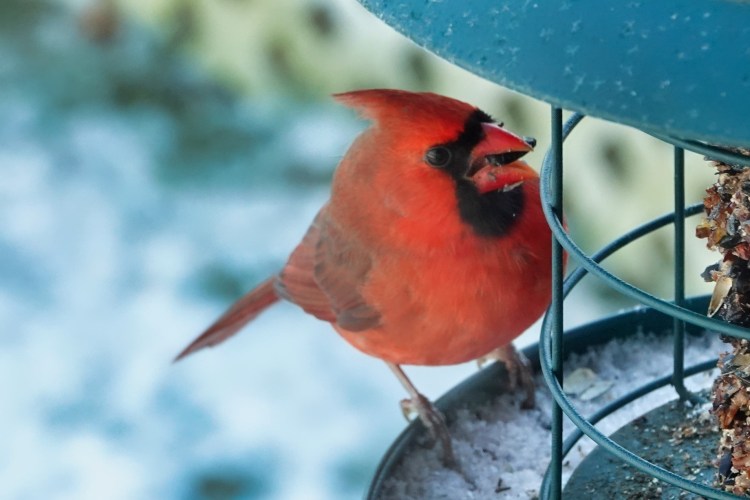 I love my bird feeder and the beautiful array of birds that flock to it, even now in this chilly weather.