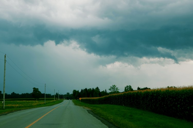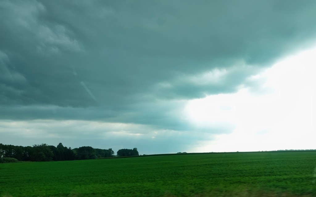 I particularly like the contast in colors in the second photo: the blue-grey of the cloulds against the deep green grass.