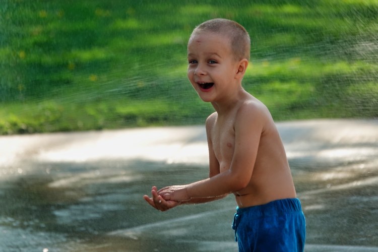 (Image: Kiril, one of the 4-year-olds, discovering the splash pad.)
