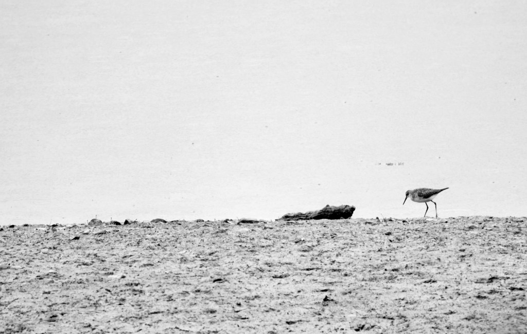 The natural monotone state of Winter is captured in the first photograph, while I chose black and white for the little wader to emphasize the mood.