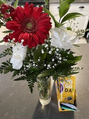 The flowers were from Alla – red and white for Canada, with Ukrainian berries.