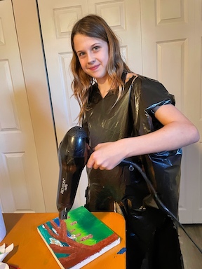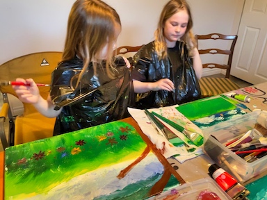 Family Day weekend – a holiday here in Canada – I invited three of our granddaughters to stay over. My son had visited weeks before and set up an art studio for me, complete with his leftover paints and canvases, so I asked if the little ones would help me organize it.