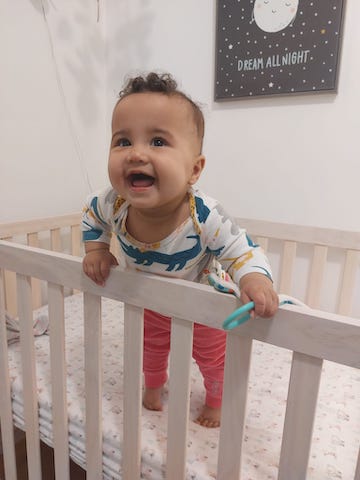 Your granddaughter looks like a very happy baby! (And adorably cute!)
