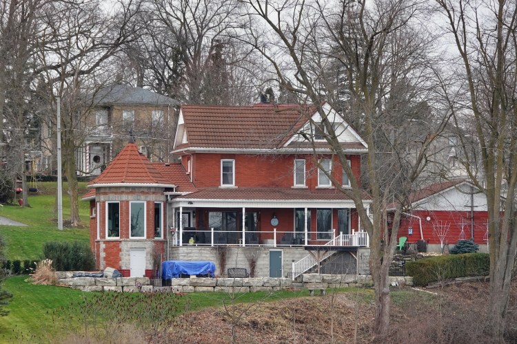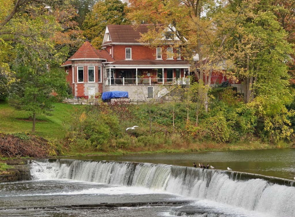 I love the waterfall view the brick house has.