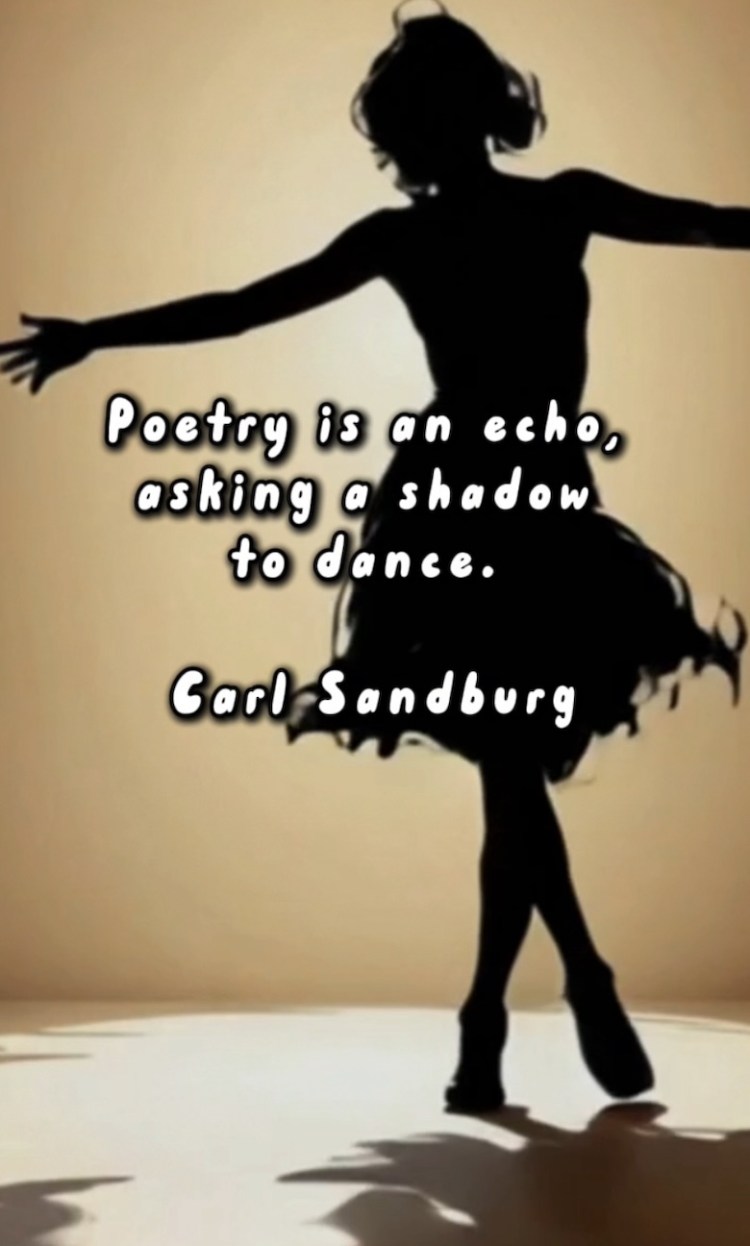 I love Sandburg’s take: “Poetry is an echo asking a shadow to dance.”